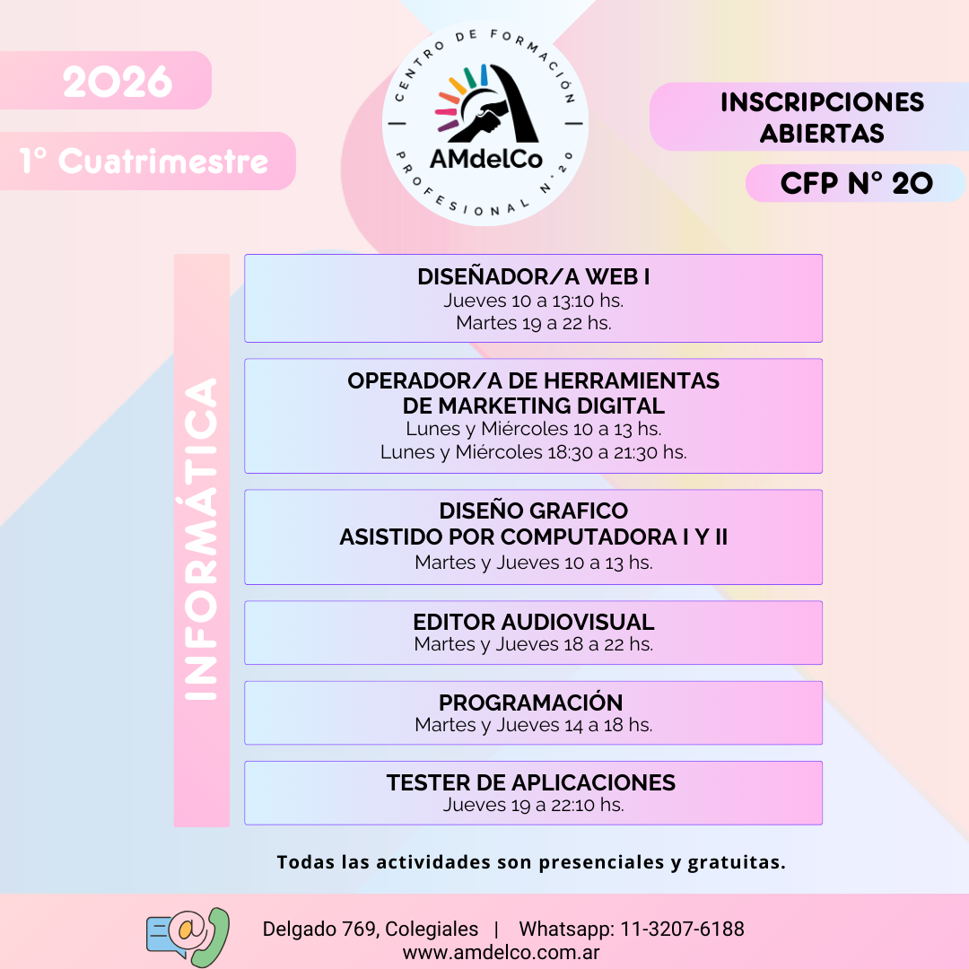 Si la oferta es de AMDELCO o de algún Taller, abrí las imágenes y hace clic en inscribite, para poder completar el formulario de Google Form.